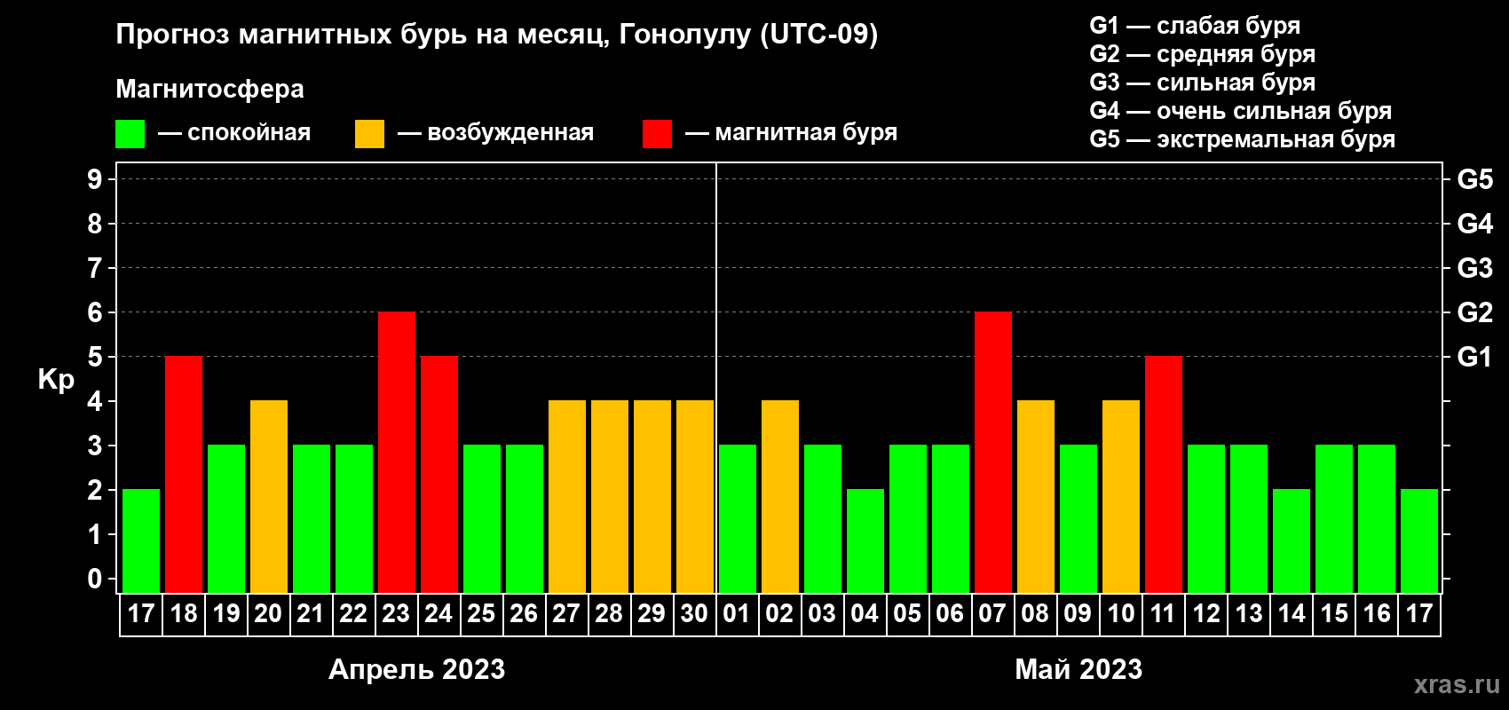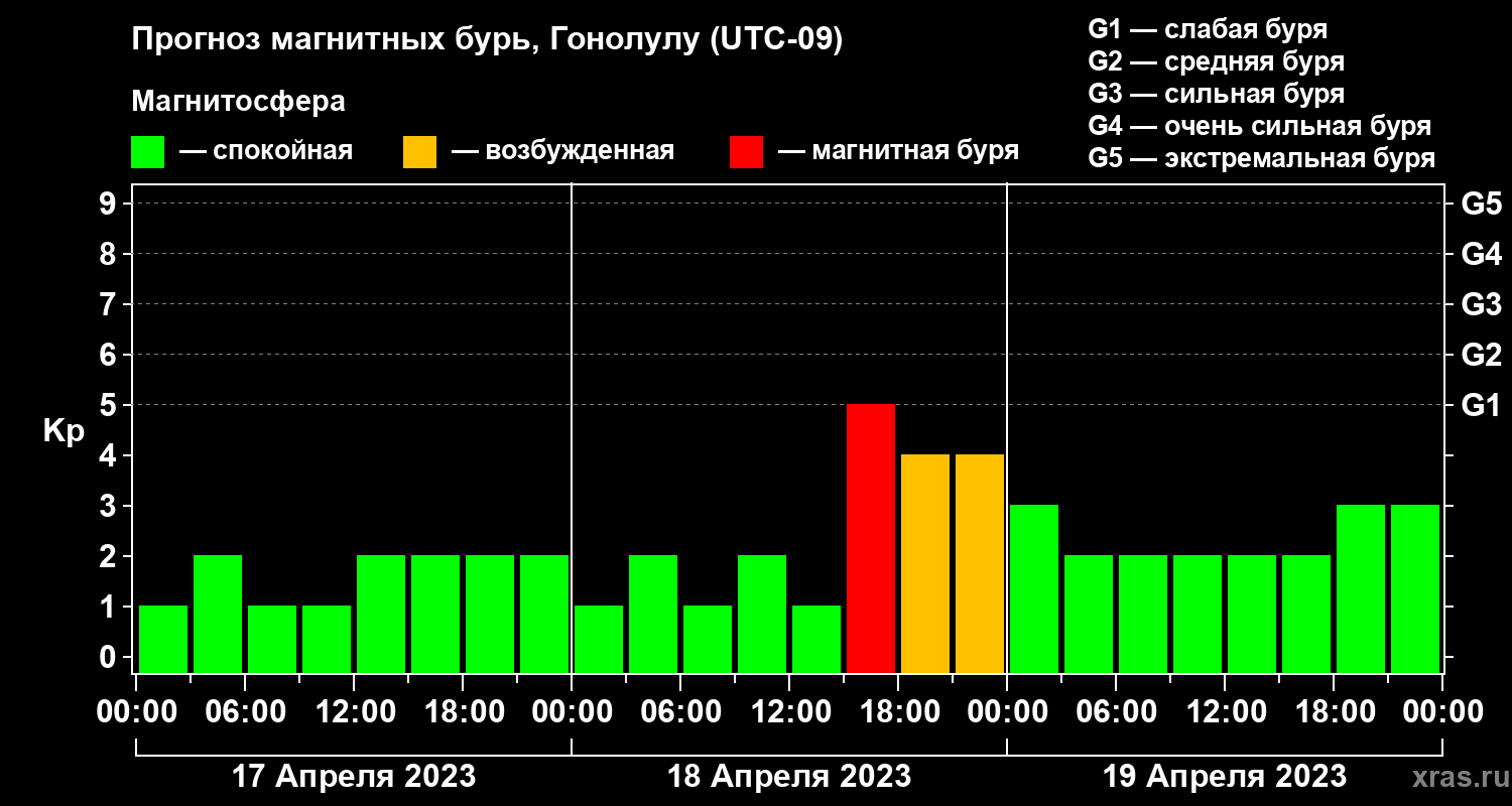 Прогноз магнитных бурь Гонолулу на 17 апреля 2023 года