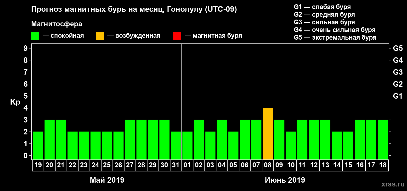 Прогноз магнитных бурь Гонолулу — 19 мая 2019 года
