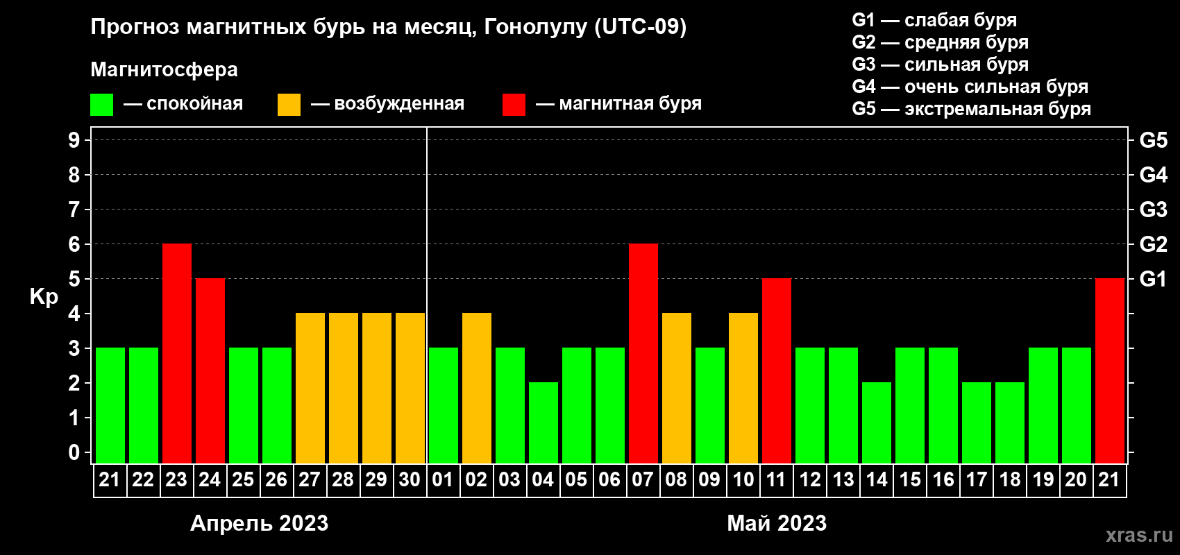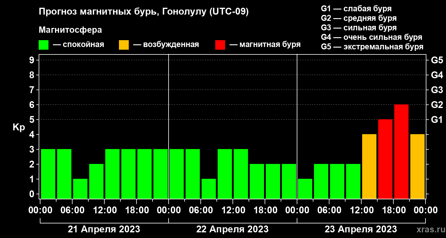 Прогноз магнитных бурь Гонолулу на 21 апреля 2023 года
