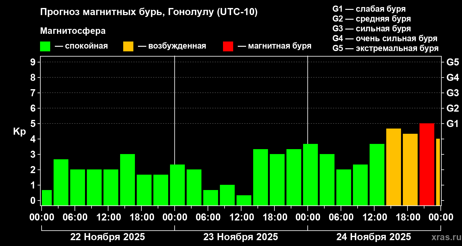 Прогноз магнитных бурь Гонолулу — 22 ноября 2025 года
