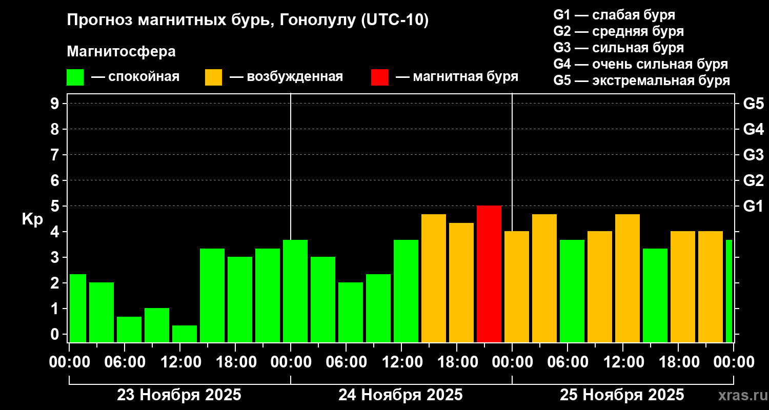 Прогноз магнитных бурь Гонолулу — 23 ноября 2025 года