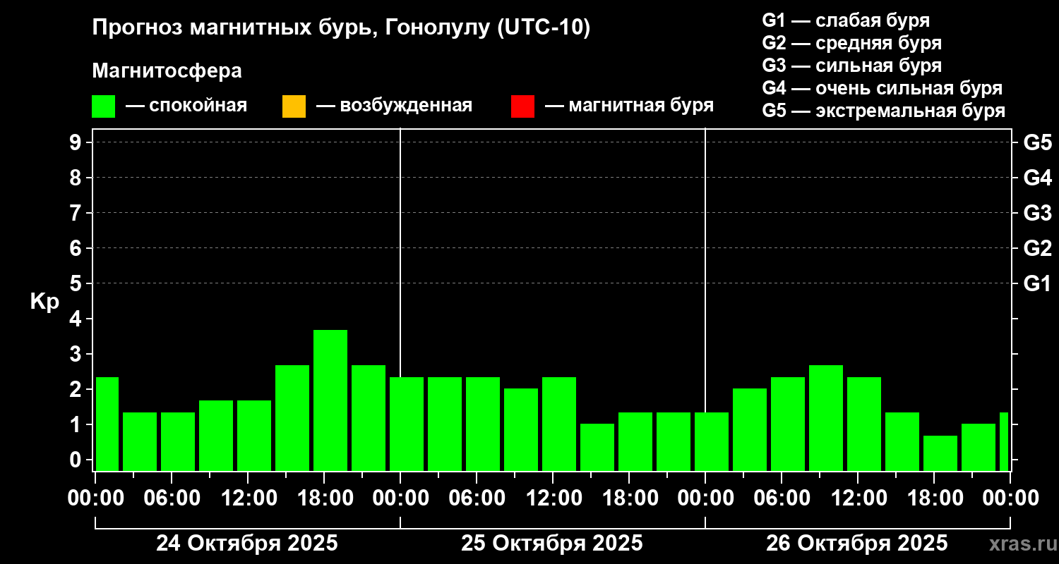 Прогноз магнитных бурь Гонолулу на 24 октября 2025 года