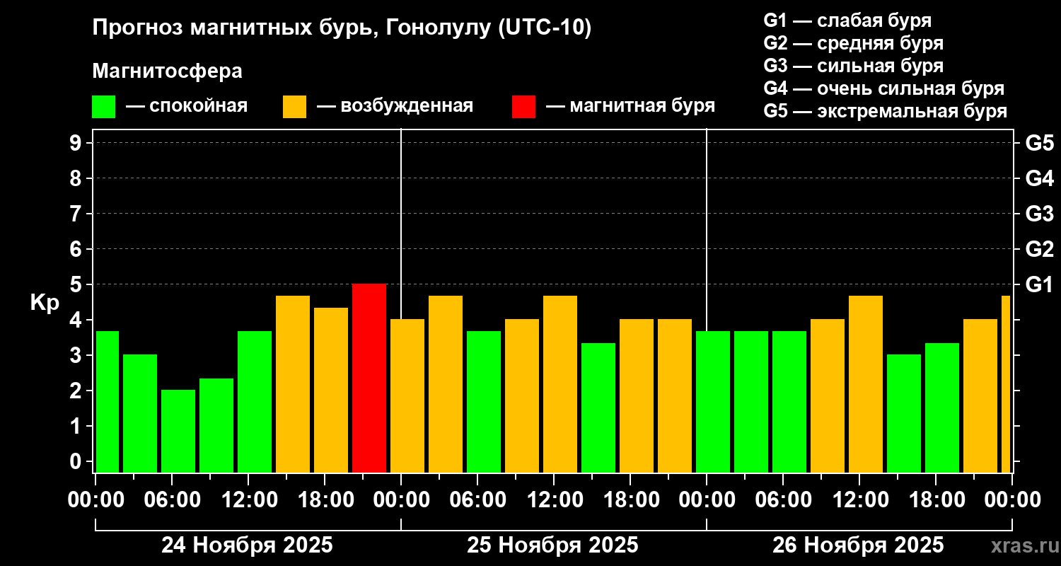 Прогноз магнитных бурь Гонолулу на 24 ноября 2025 года