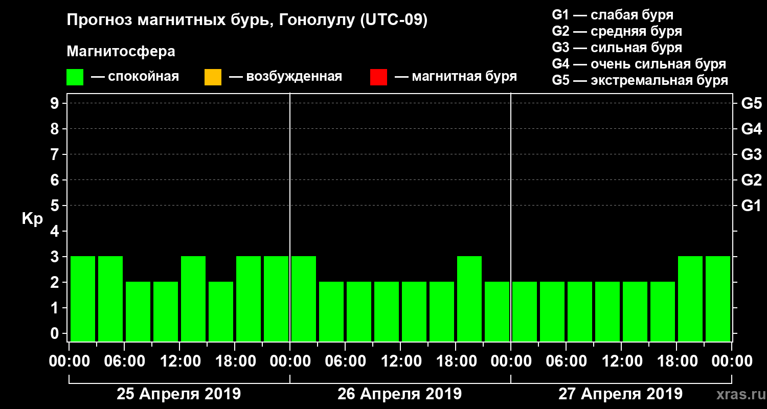 Прогноз магнитных бурь Гонолулу — 25 апреля 2019 года