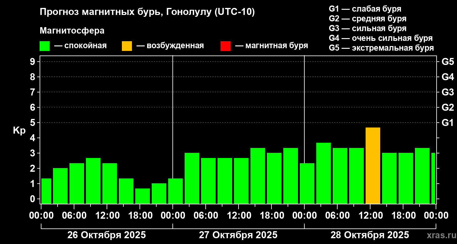 Прогноз магнитных бурь Гонолулу на 26 октября 2025 года