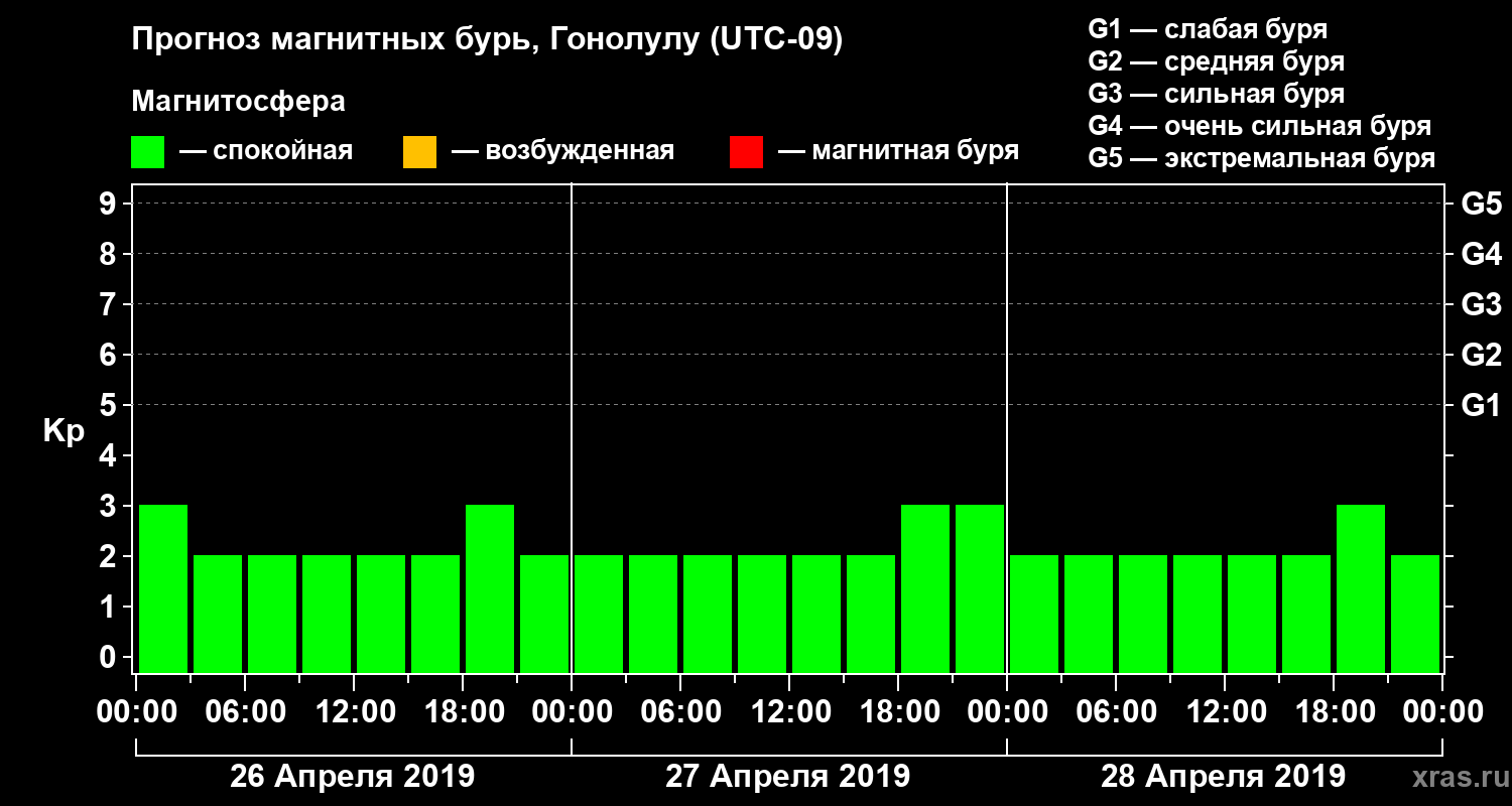 Прогноз магнитных бурь Гонолулу на 26 апреля 2019 года