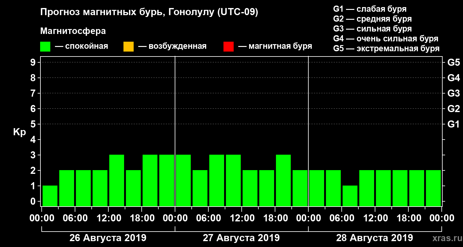 Прогноз магнитных бурь Гонолулу на 26 августа 2019 года