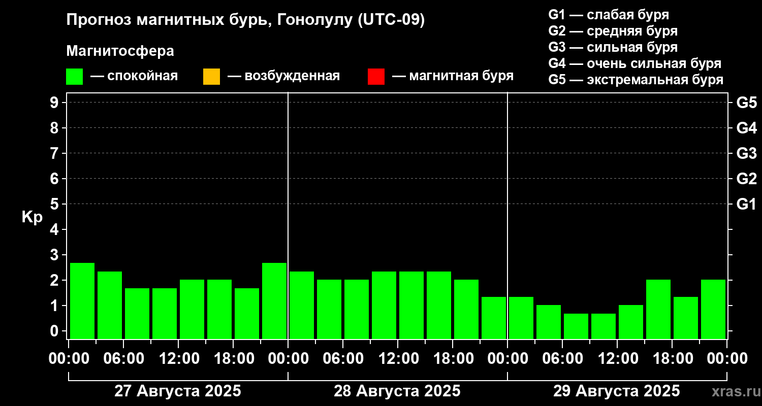 Прогноз магнитных бурь Гонолулу на 27 августа 2025 года