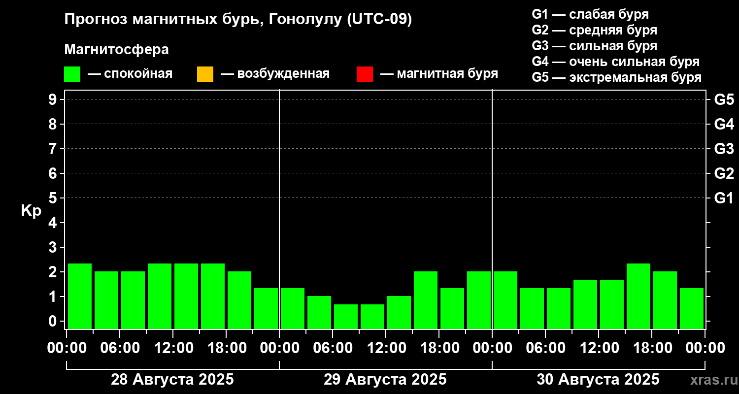 Прогноз магнитных бурь Гонолулу на 28 августа 2025 года