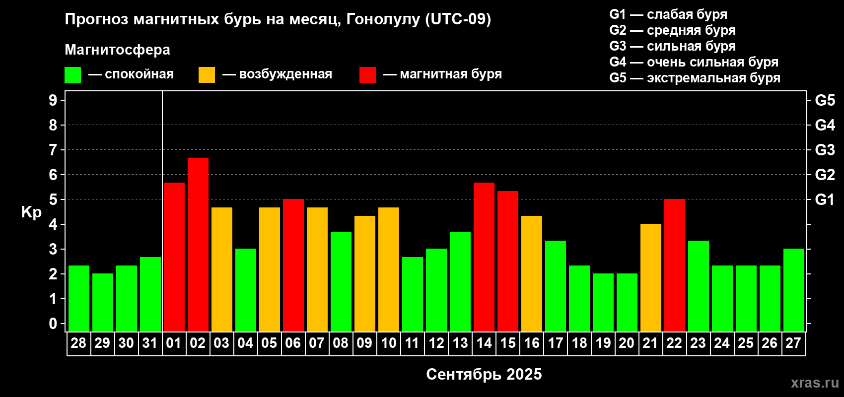 Прогноз магнитных бурь Гонолулу — 28 августа 2025 года