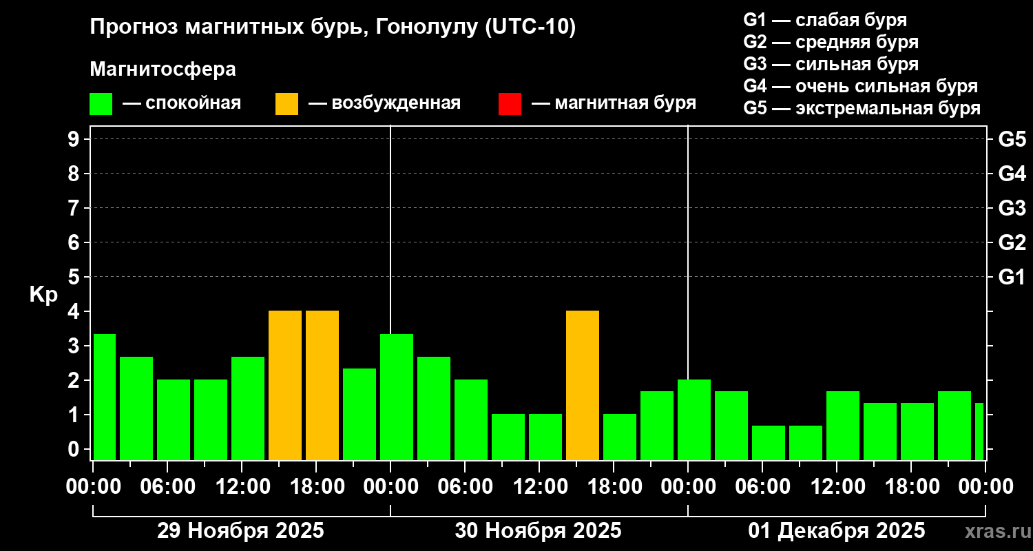 Прогноз магнитных бурь Гонолулу — 29 ноября 2025 года