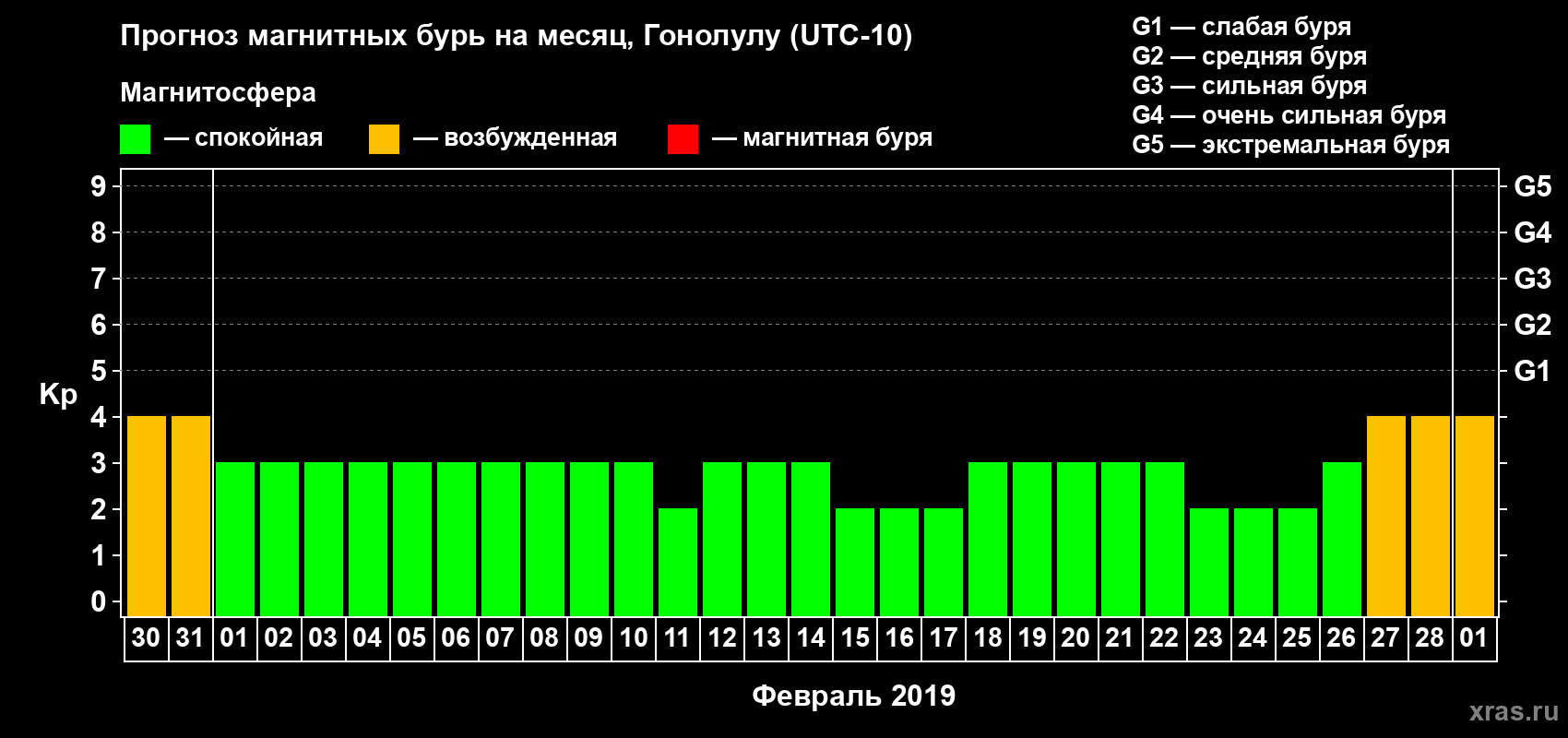 Прогноз магнитных бурь Гонолулу — 30 января 2019 года