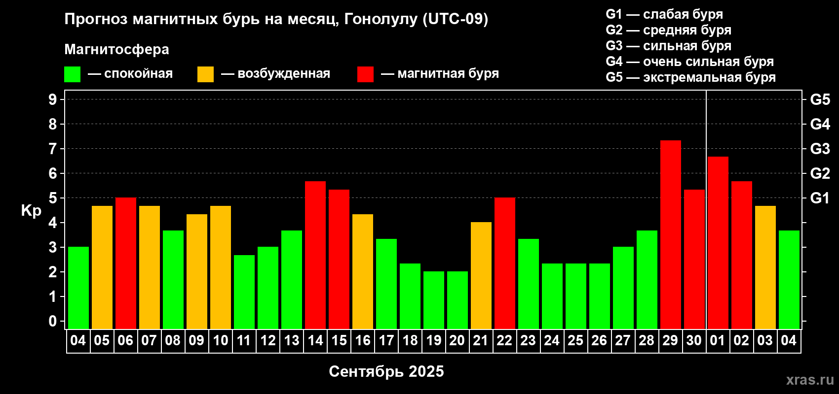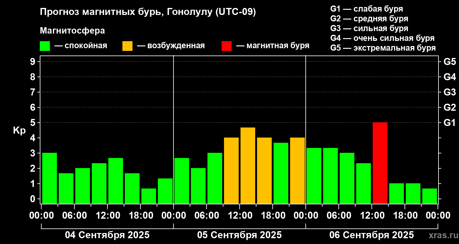 Прогноз магнитных бурь Гонолулу на 4 сентября 2025 года