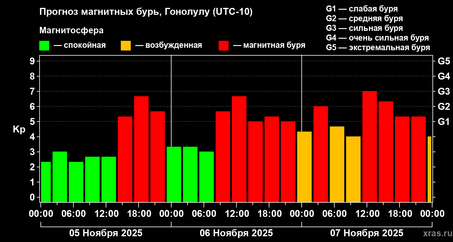 Прогноз магнитных бурь Гонолулу на 5 ноября 2025 года