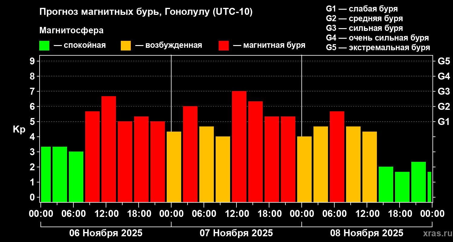 Прогноз магнитных бурь Гонолулу на 6 ноября 2025 года