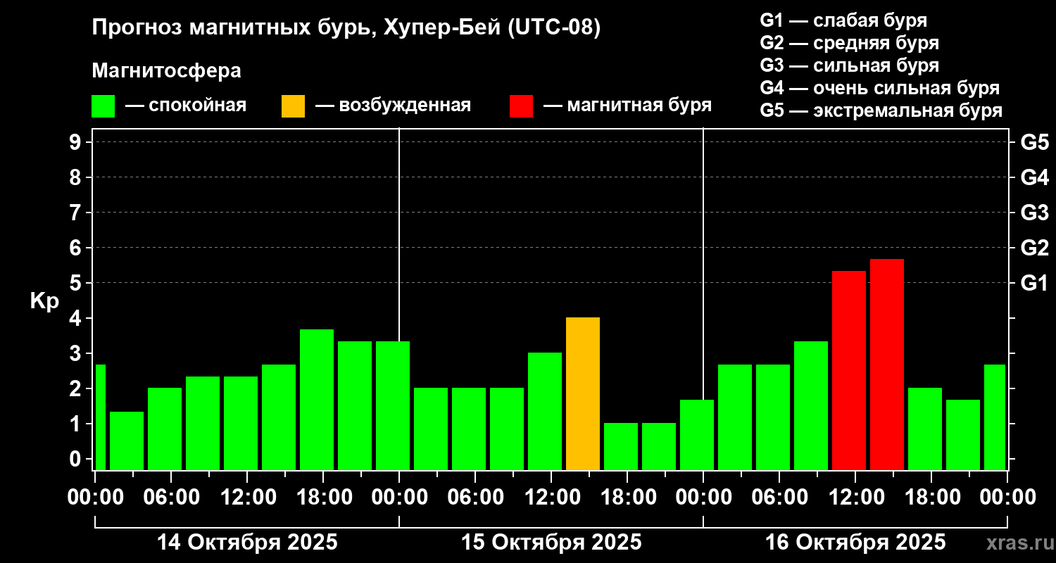 Прогноз магнитных бурь в Хупер-Бейе — 14 октября 2025 года