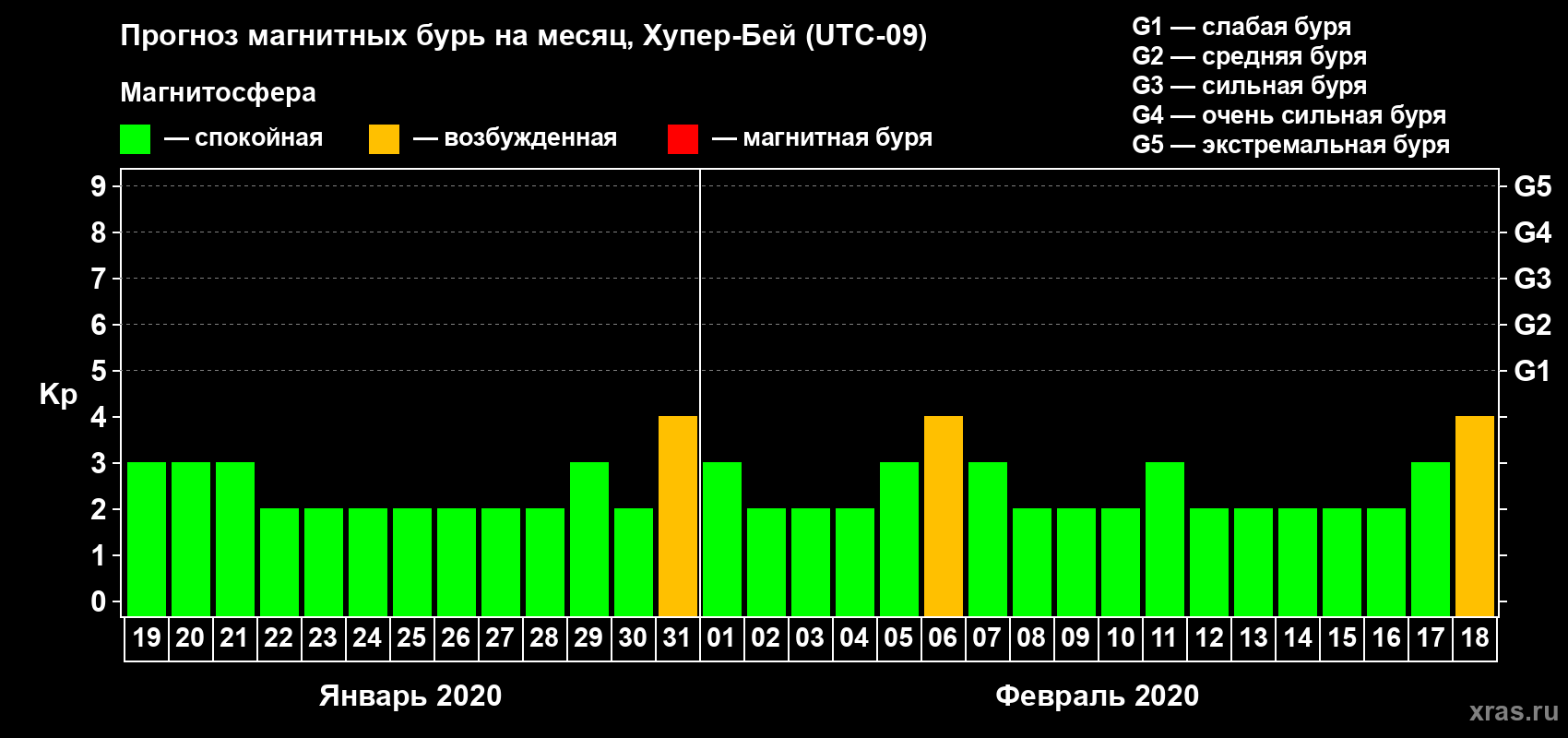 Прогноз магнитных бурь в Хупер-Бейе — 19 января 2020 года