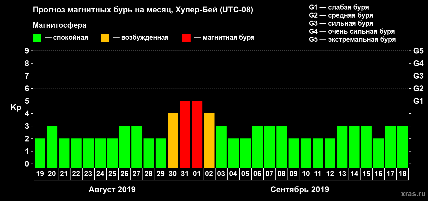 Прогноз магнитных бурь в Хупер-Бейе — 19 августа 2019 года