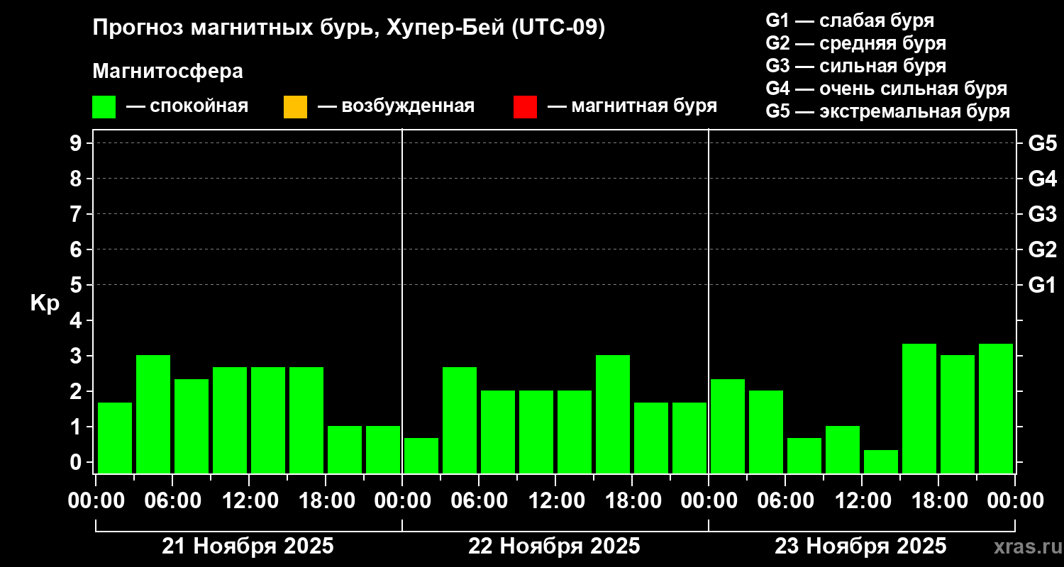 Прогноз магнитных бурь в Хупер-Бейе на 21 ноября 2025 года