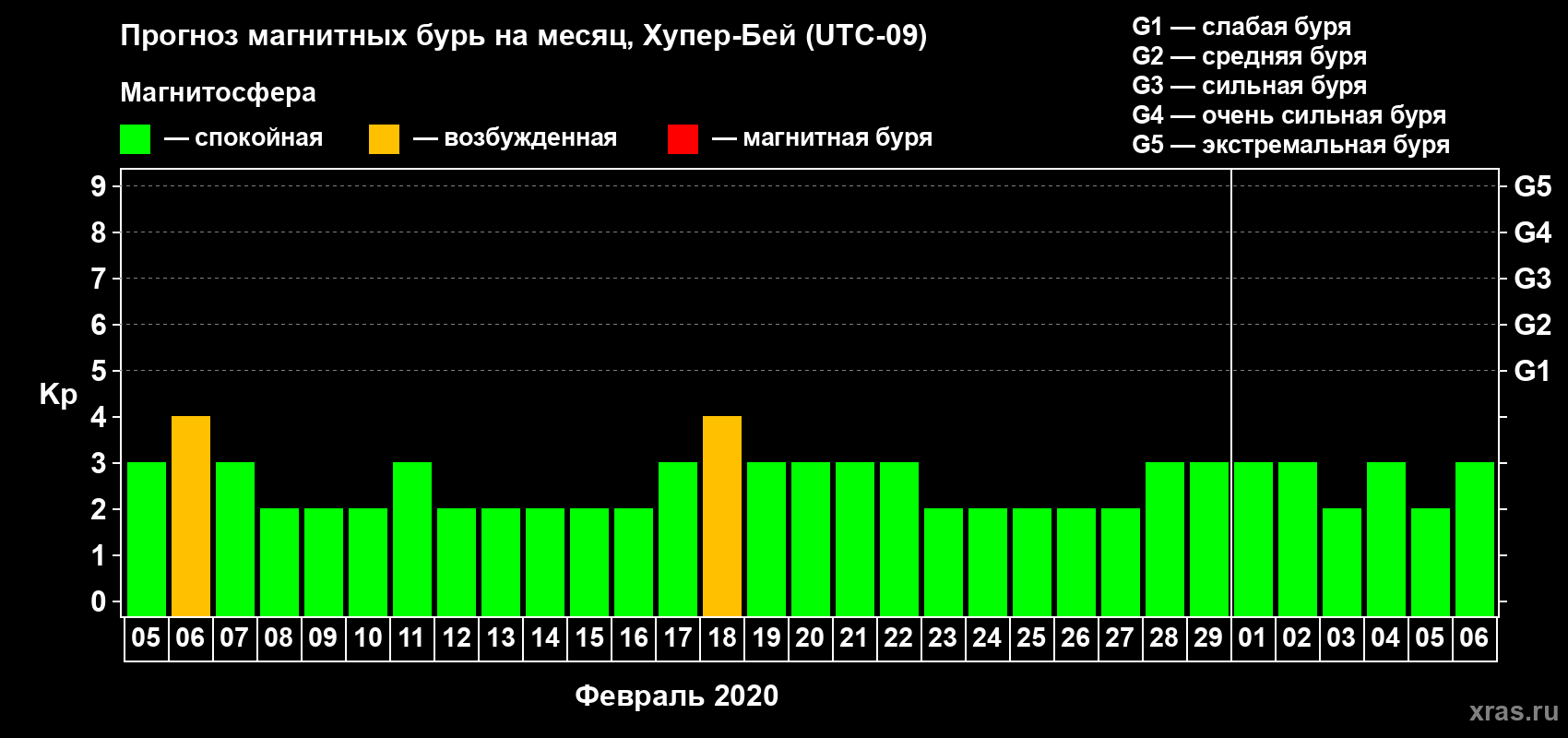 Прогноз магнитных бурь в Хупер-Бейе — 5 февраля 2020 года