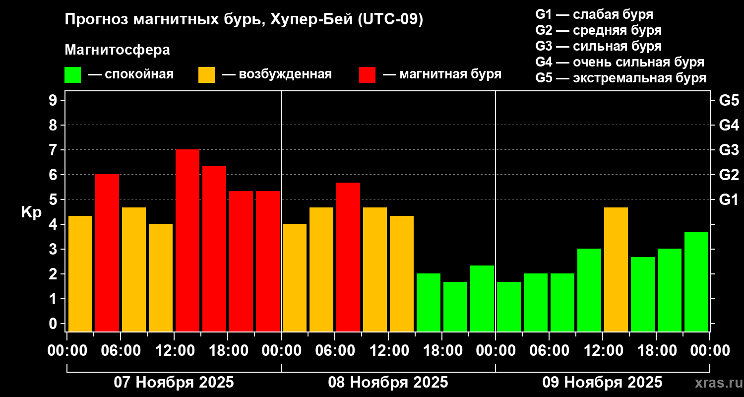 Прогноз магнитных бурь в Хупер-Бейе на 7 ноября 2025 года