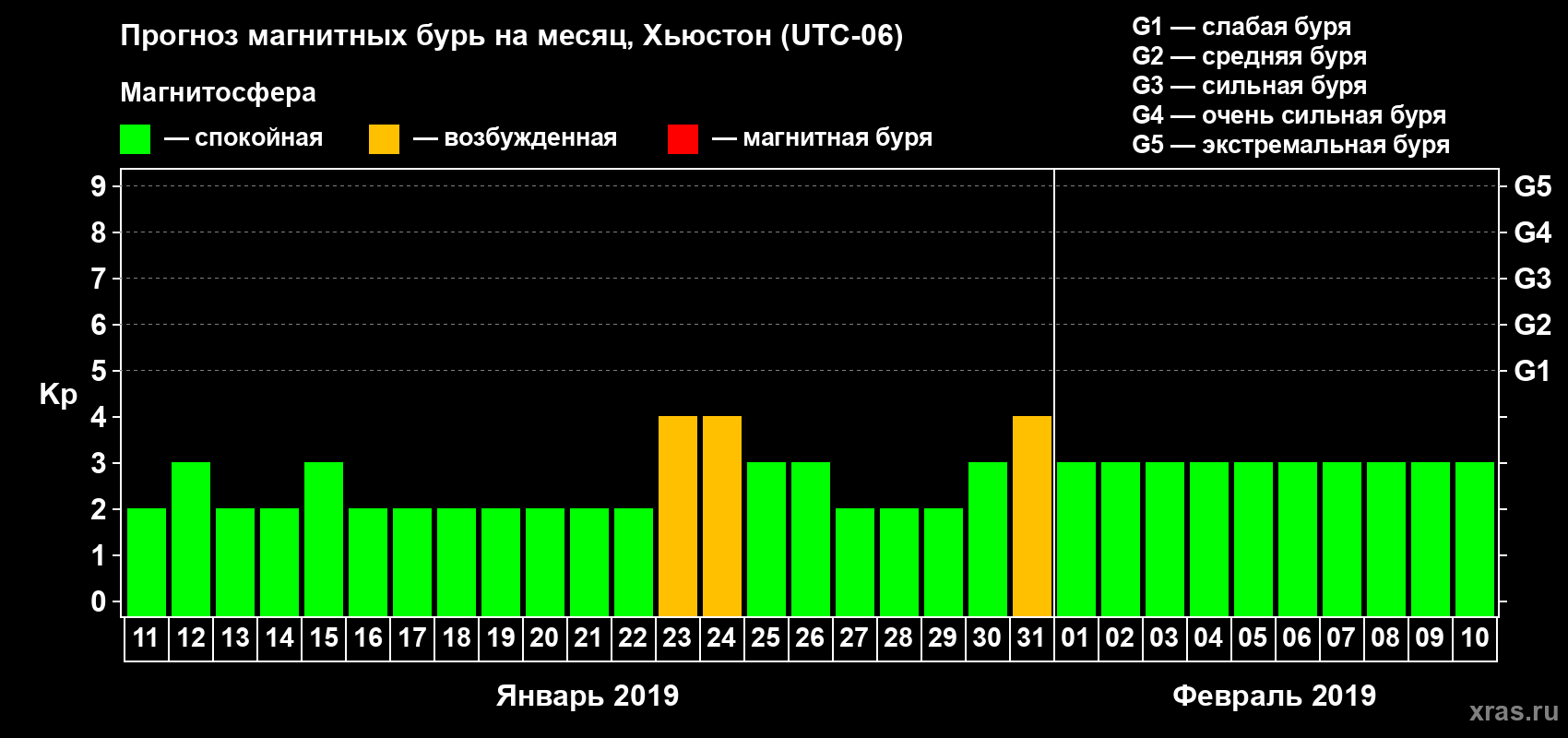 Прогноз магнитных бурь в Хьюстоне — 11 января 2019 года