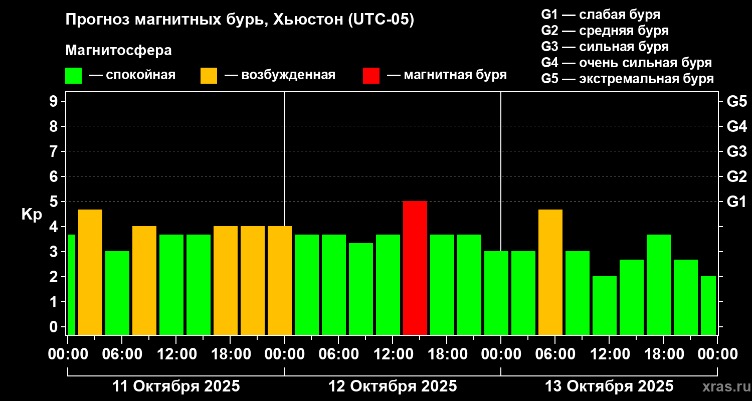 Прогноз магнитных бурь в Хьюстоне — 11 октября 2025 года