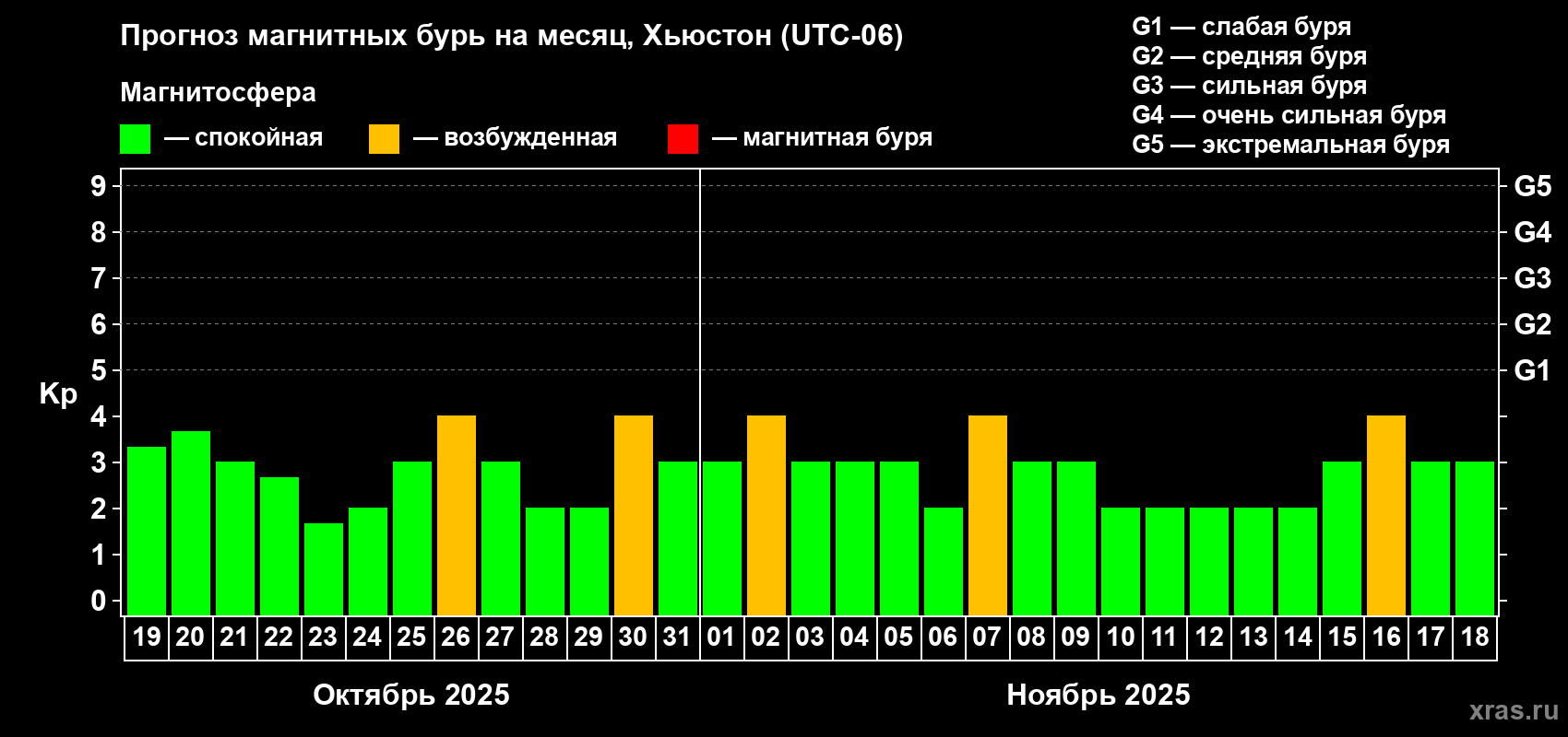 Прогноз магнитных бурь в Хьюстоне — 19 октября 2025 года