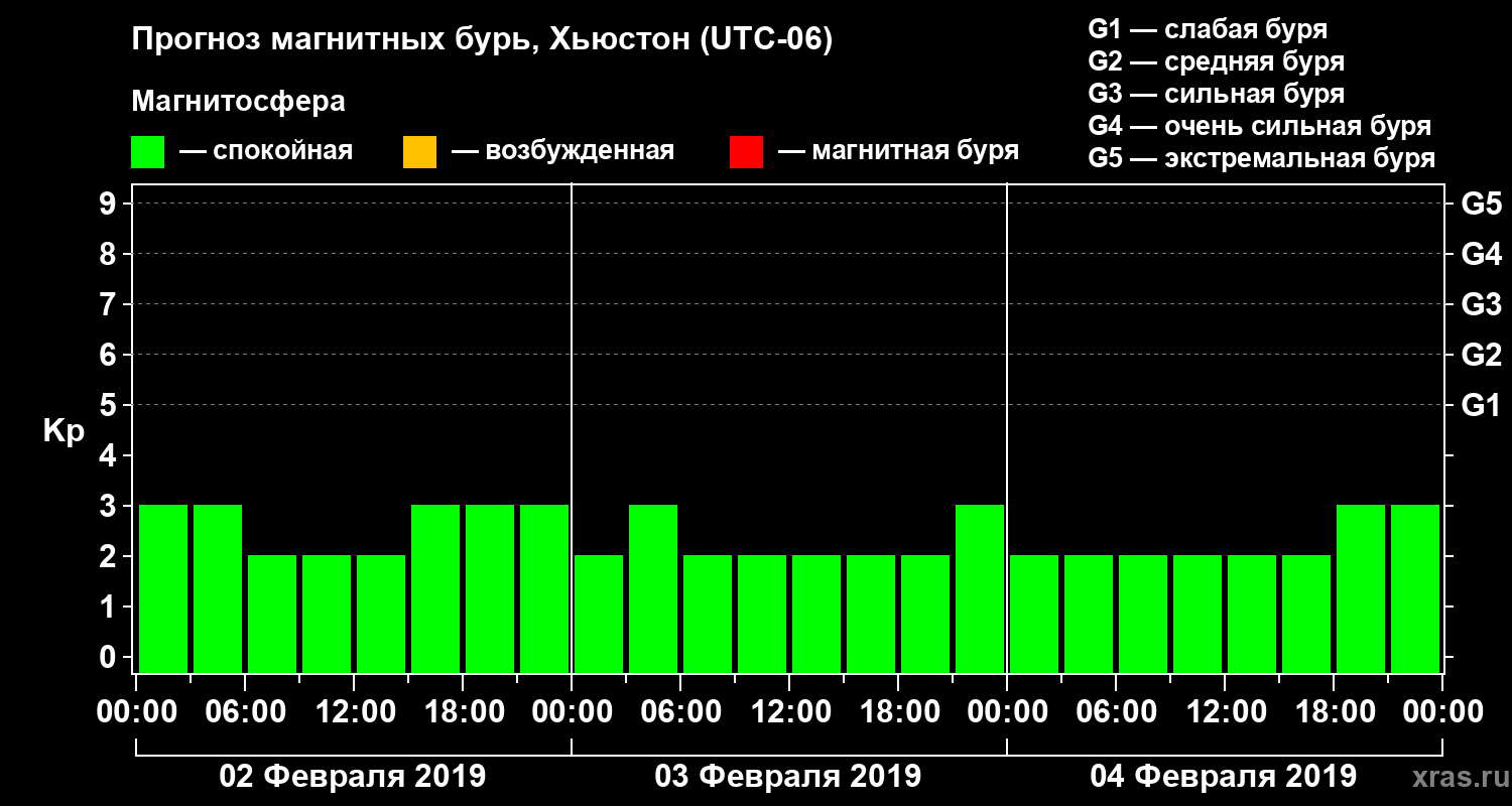 Прогноз магнитных бурь в Хьюстоне — 2 февраля 2019 года