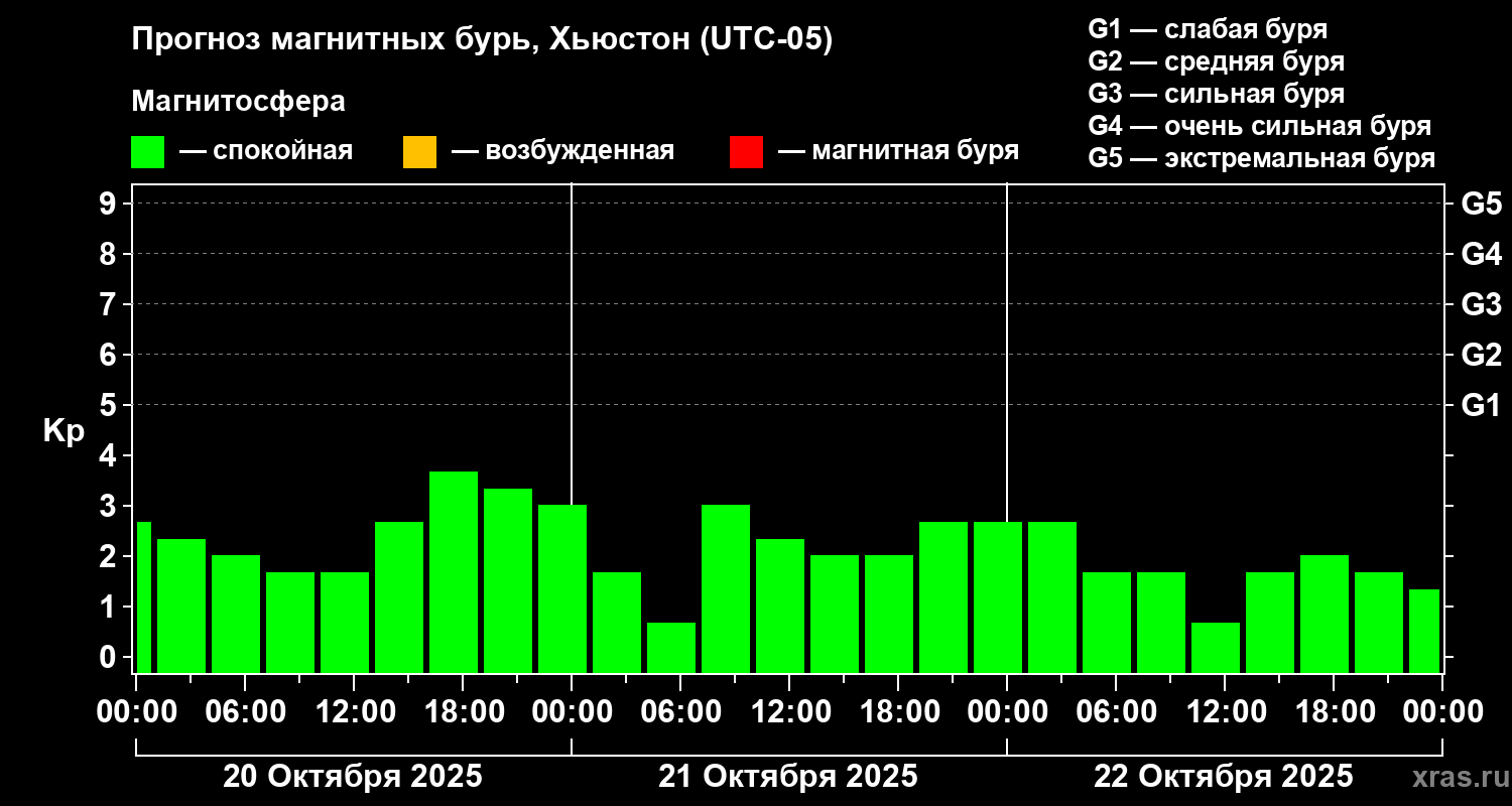 Прогноз магнитных бурь в Хьюстоне на 20 октября 2025 года