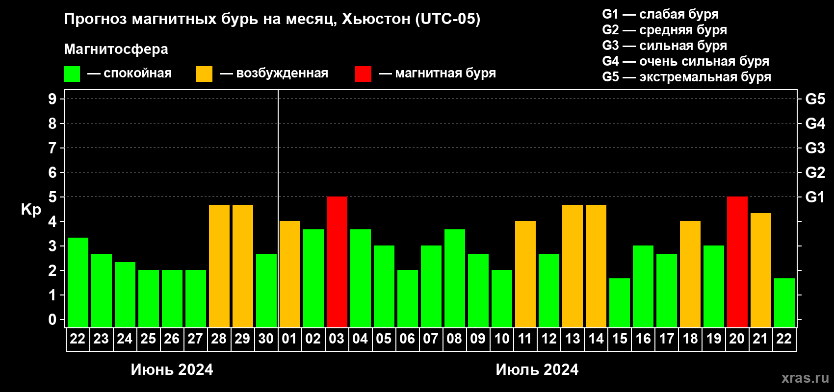 Прогноз магнитных бурь в Хьюстоне на 22 июня 2024 года