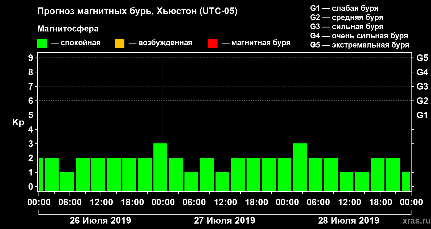 Прогноз магнитных бурь в Хьюстоне — 26 июля 2019 года
