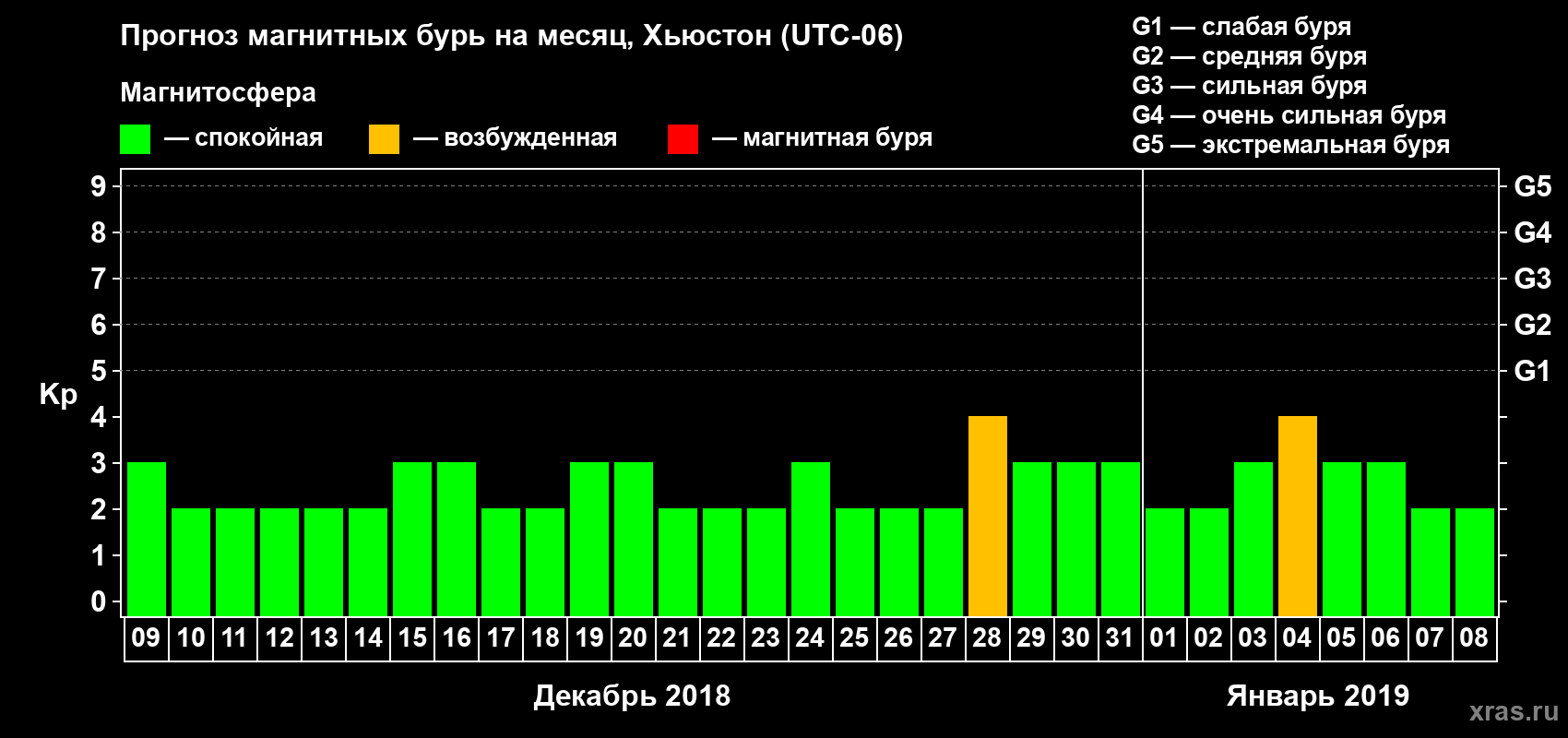 Прогноз магнитных бурь в Хьюстоне — 9 декабря 2018 года