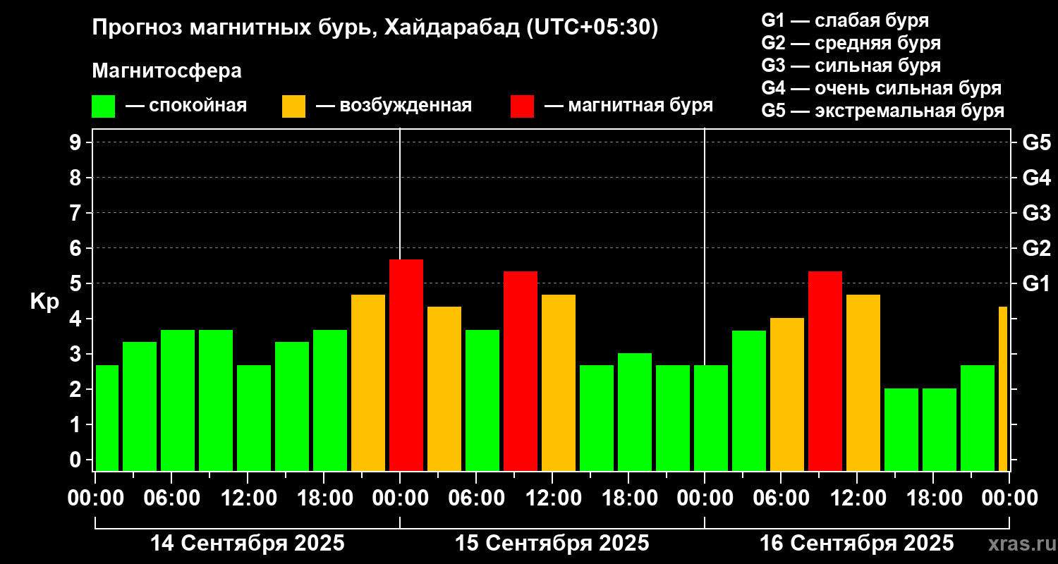 Прогноз магнитных бурь в Хайдарабаде — 14 сентября 2025 года