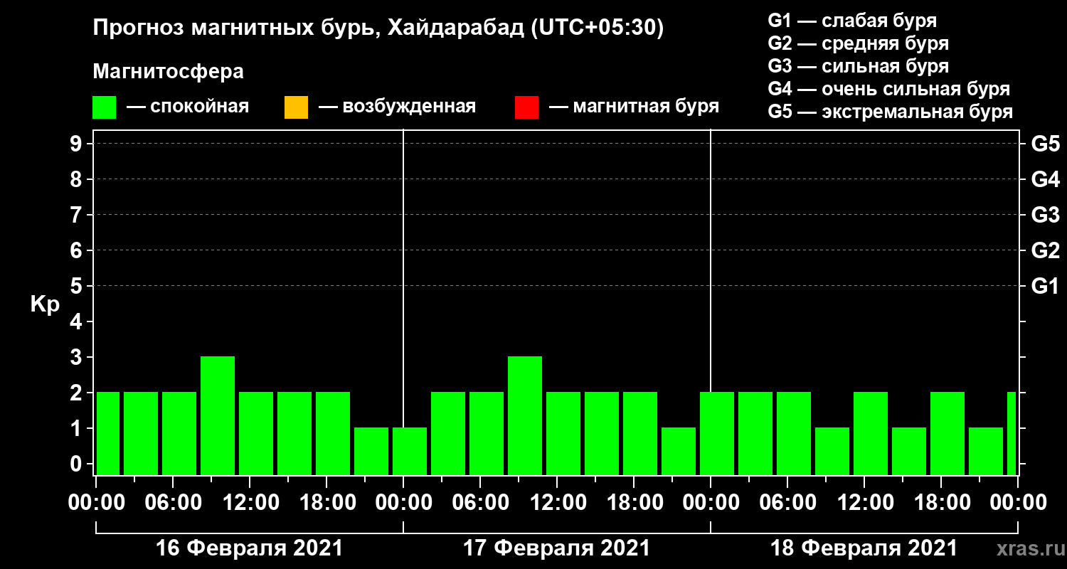 Прогноз магнитных бурь в Хайдарабаде — 16 февраля 2021 года