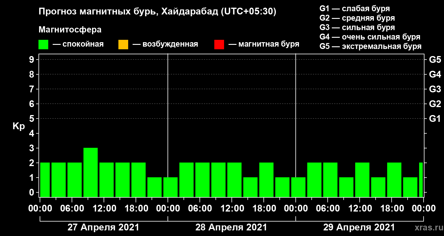 Прогноз магнитных бурь в Хайдарабаде — 27 апреля 2021 года