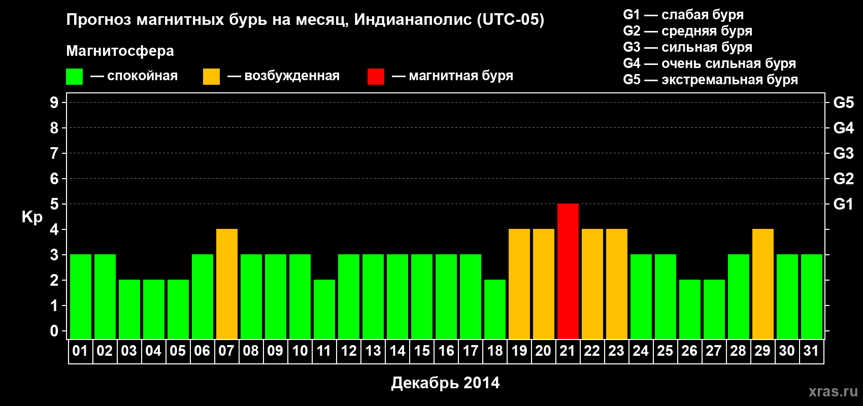 Прогноз магнитных бурь в Индианаполисе — 1 декабря 2014 года