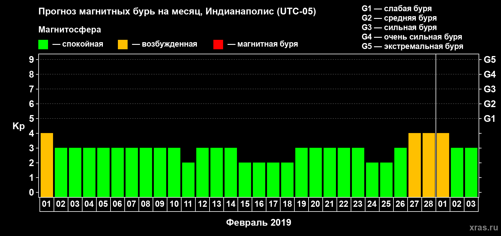 Прогноз магнитных бурь в Индианаполисе — 1 февраля 2019 года