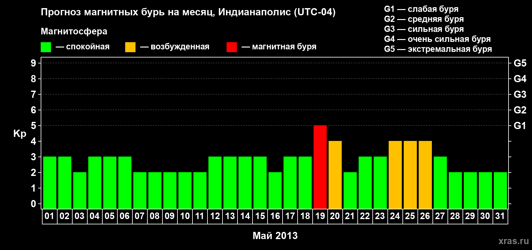 Прогноз магнитных бурь в Индианаполисе — 1 мая 2013 года