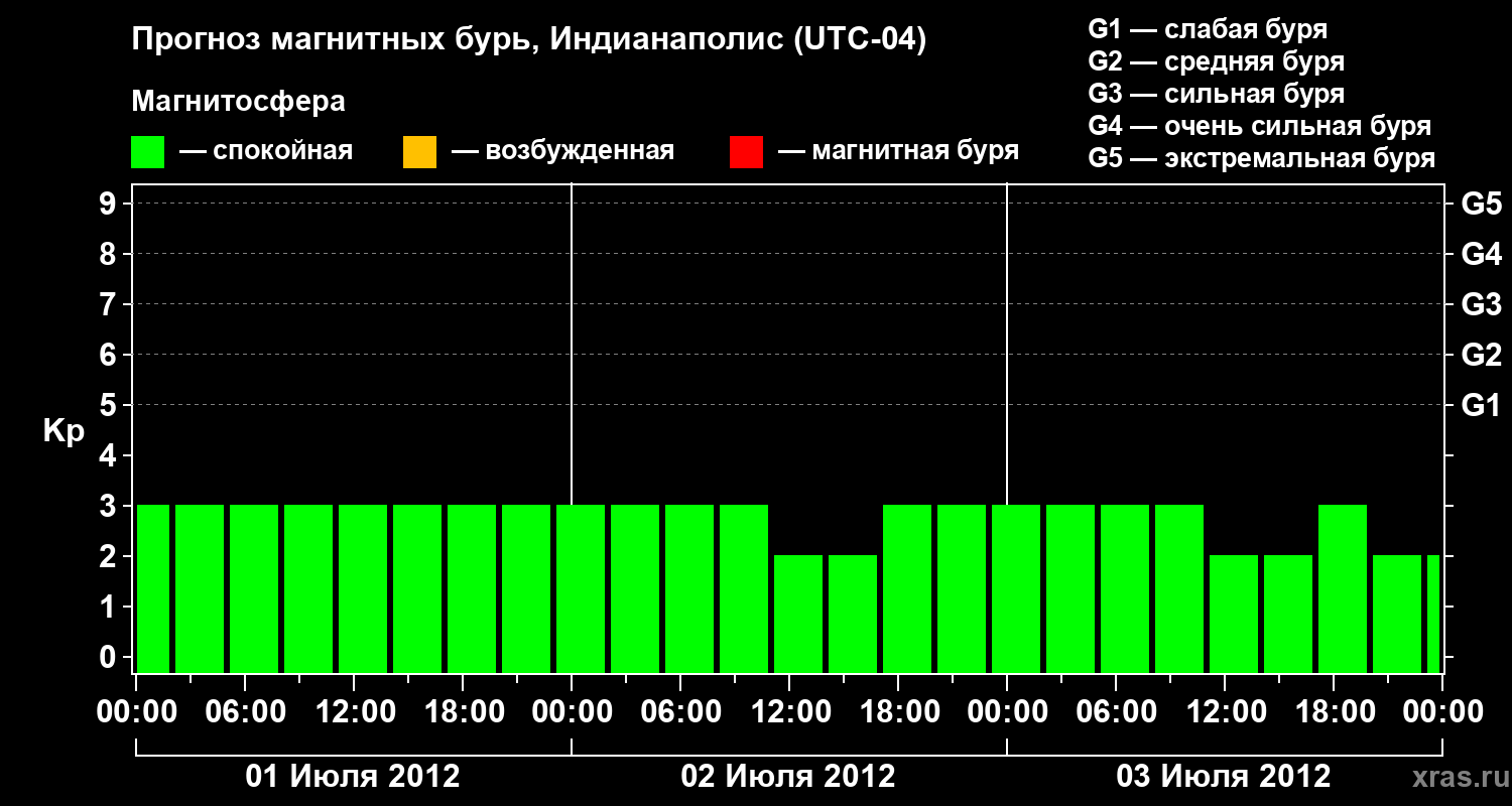 Прогноз магнитных бурь в Индианаполисе на 1 июля 2012 года