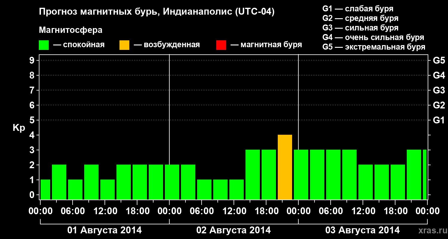 Прогноз магнитных бурь в Индианаполисе на 1 августа 2014 года
