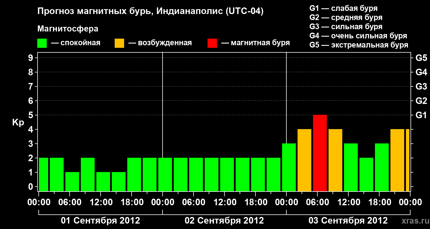 Прогноз магнитных бурь в Индианаполисе на 1 сентября 2012 года