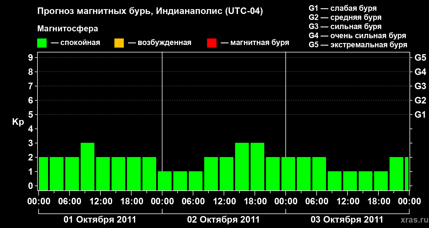 Прогноз магнитных бурь в Индианаполисе — 1 октября 2011 года
