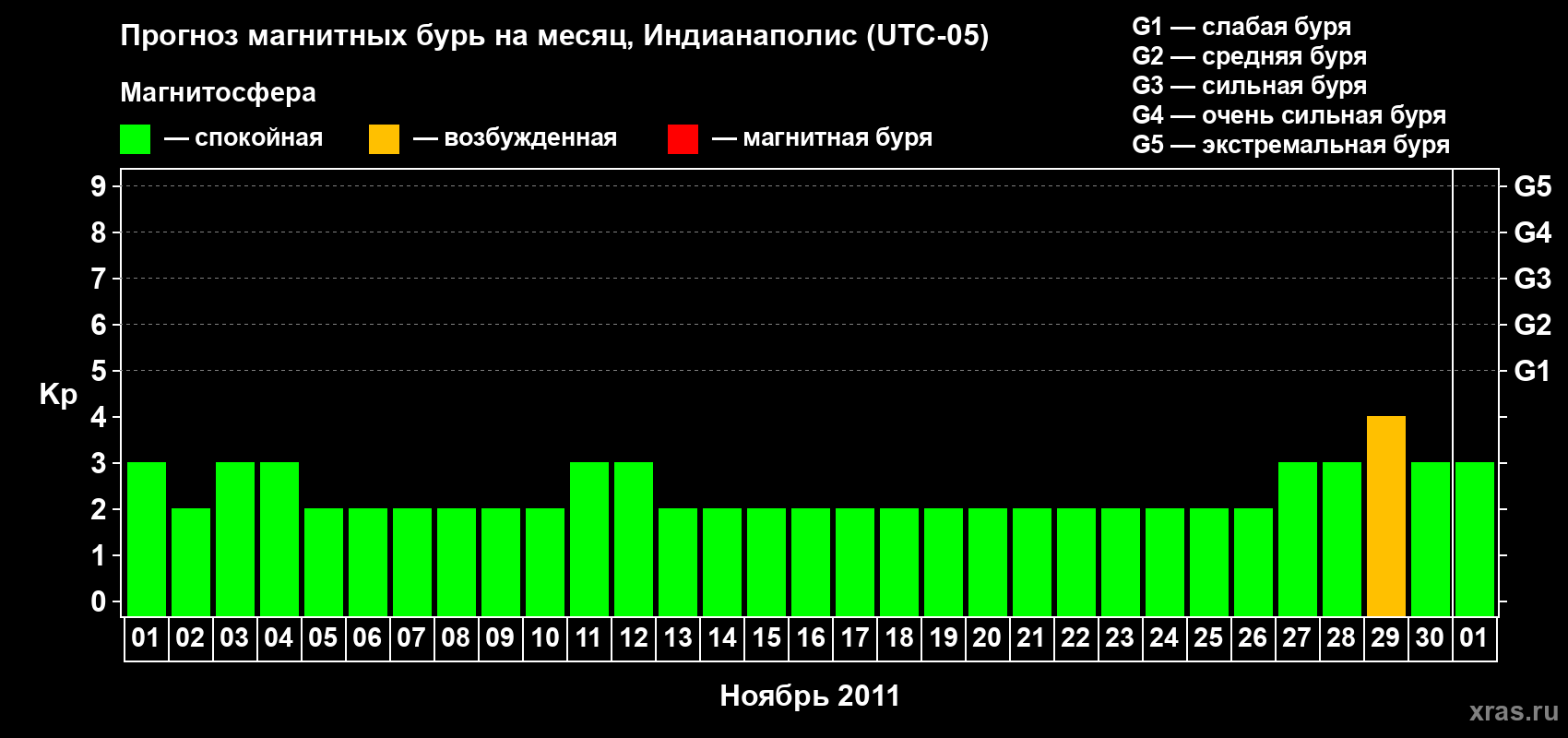 Прогноз магнитных бурь в Индианаполисе — 1 ноября 2011 года