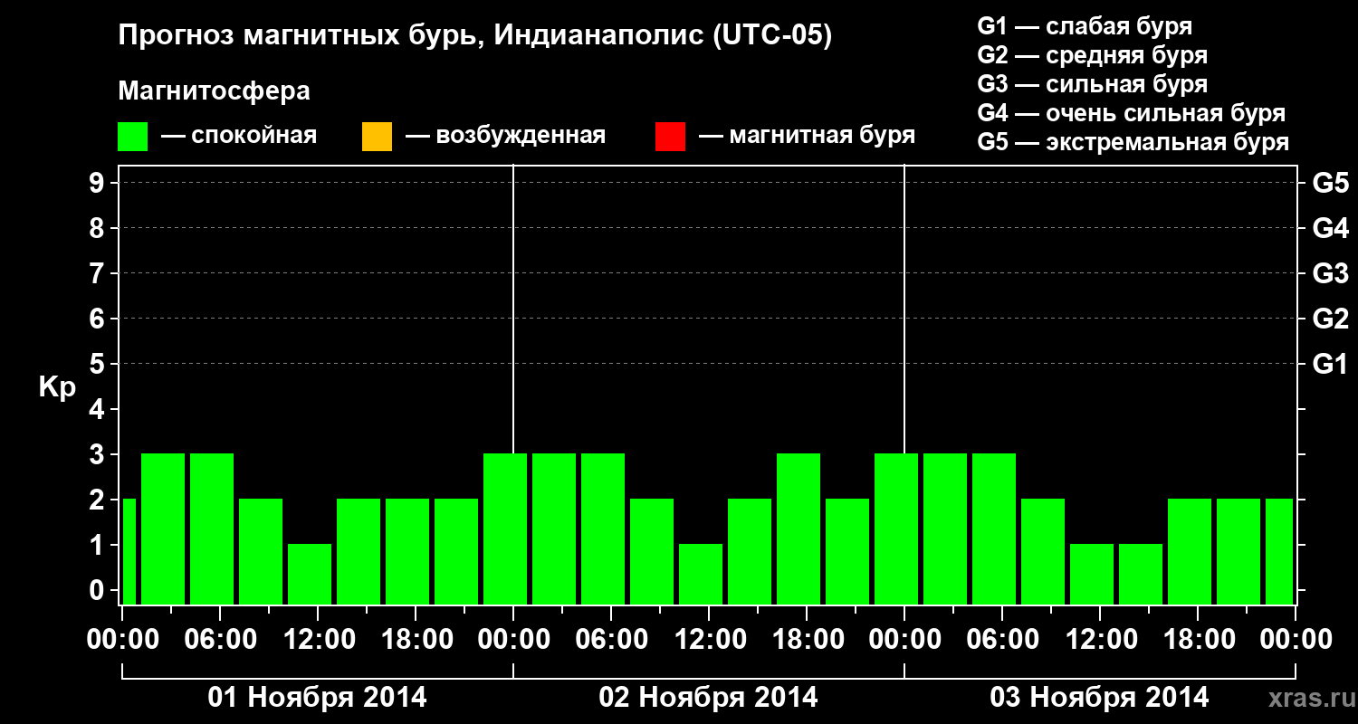 Прогноз магнитных бурь в Индианаполисе — 1 ноября 2014 года
