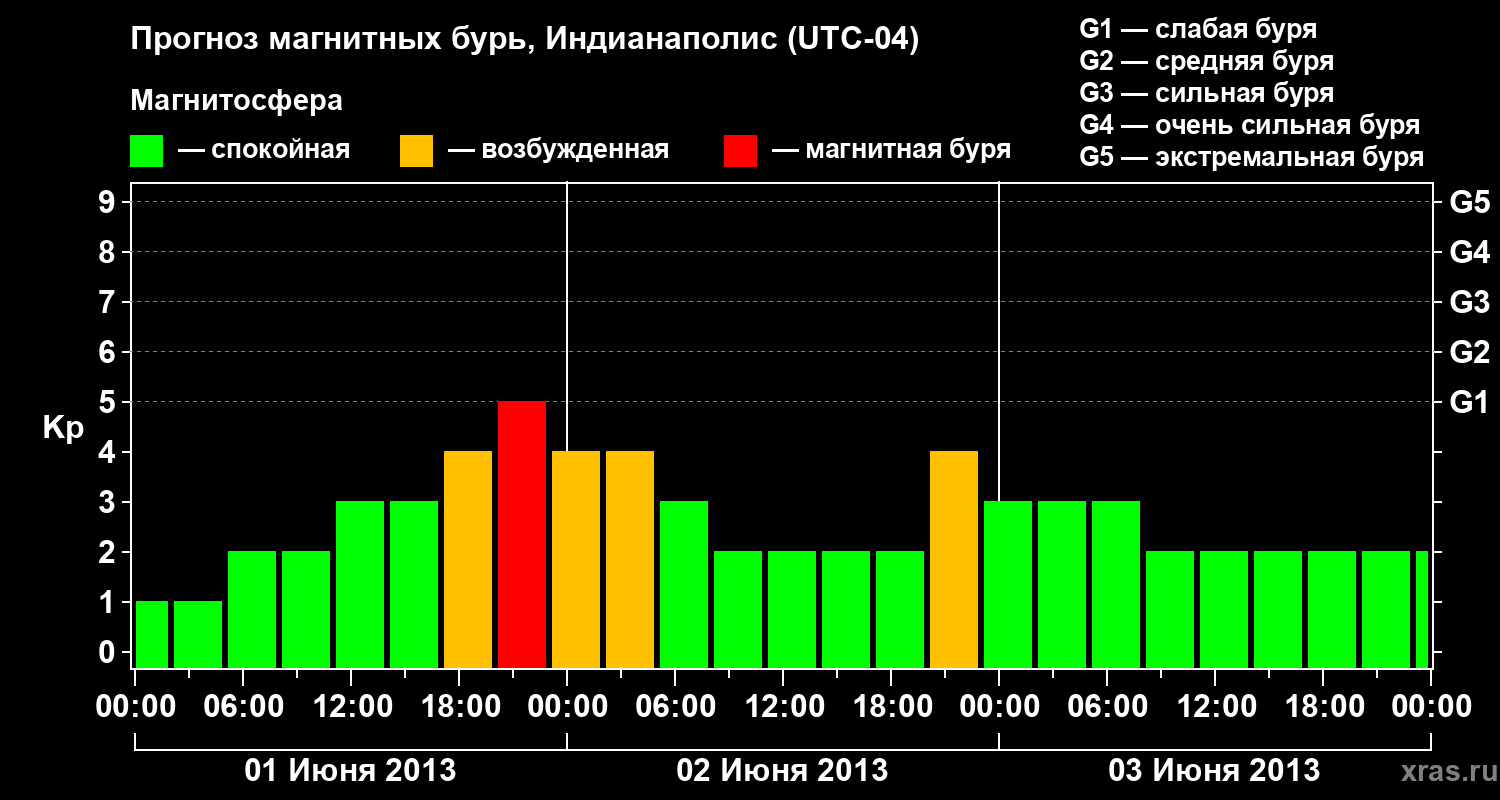 Прогноз магнитных бурь в Индианаполисе — 1 июня 2013 года