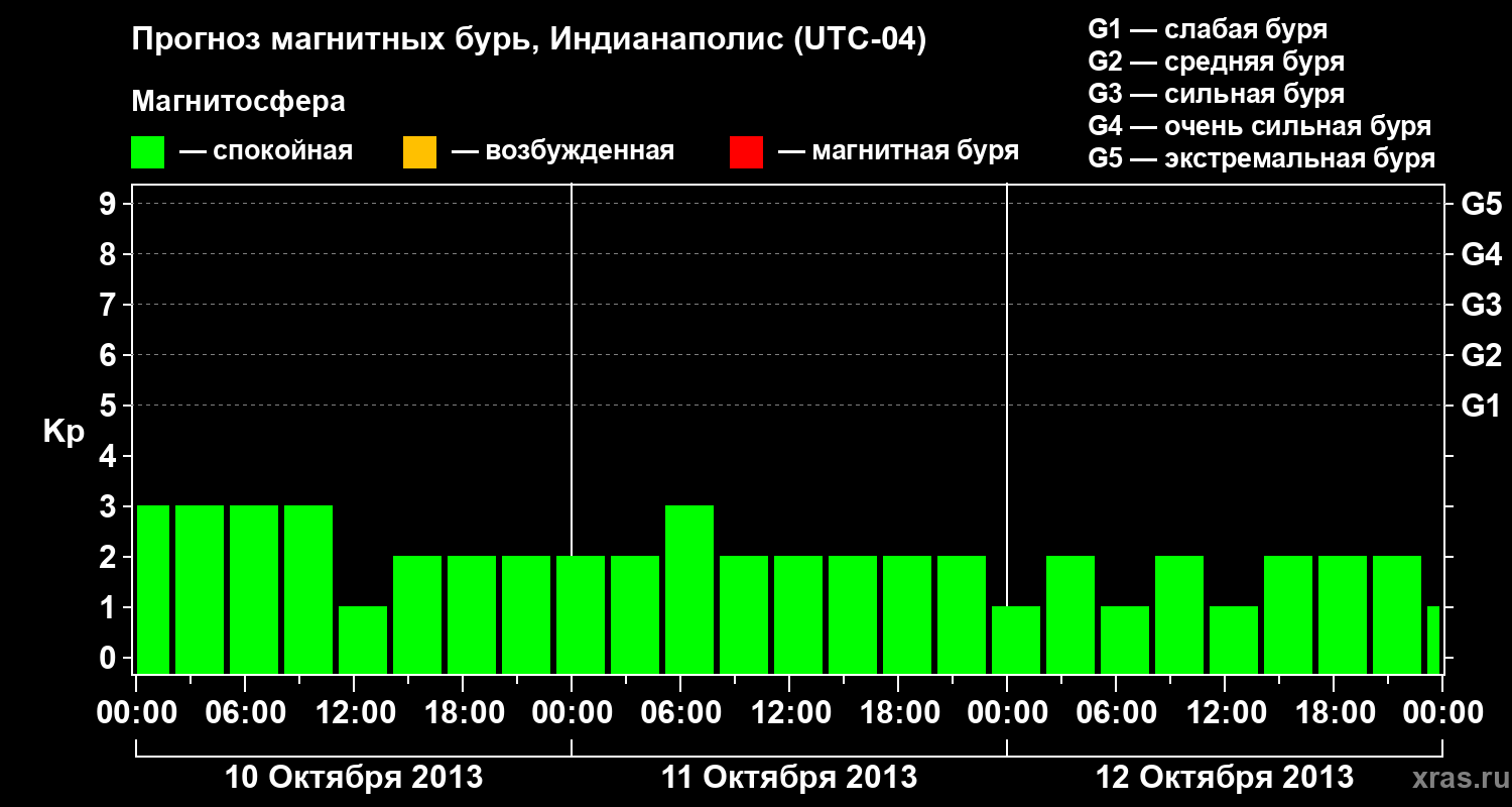 Прогноз магнитных бурь в Индианаполисе на 10 октября 2013 года
