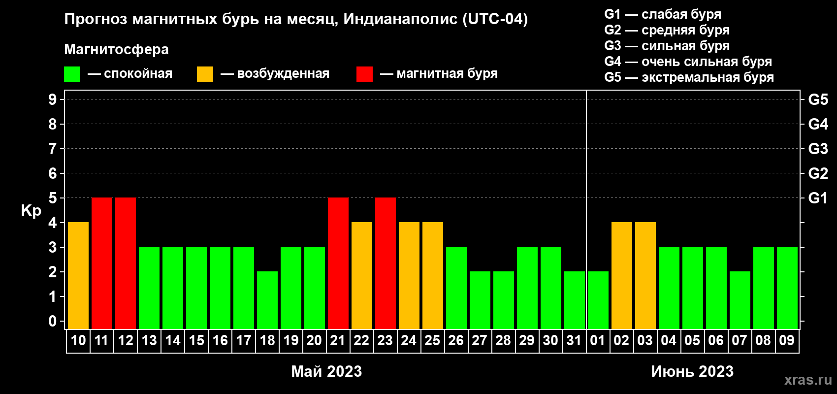 Прогноз магнитных бурь в Индианаполисе — 10 мая 2023 года