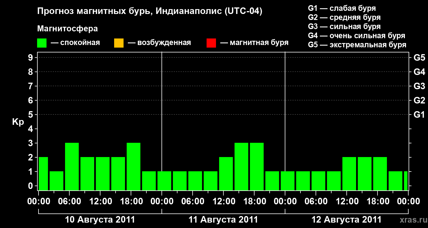 Прогноз магнитных бурь в Индианаполисе на 10 августа 2011 года
