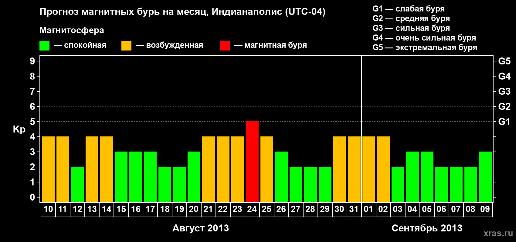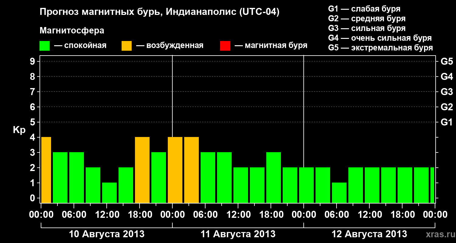 Прогноз магнитных бурь в Индианаполисе на 10 августа 2013 года